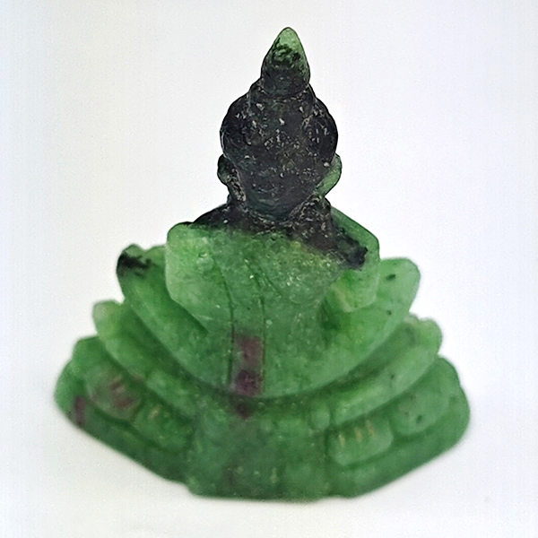 Natural Red Green Ruby in Zoisite 67.06 Ct. Buddha Carving Shape 45 x 31 Mm Gemstone From Madagascar