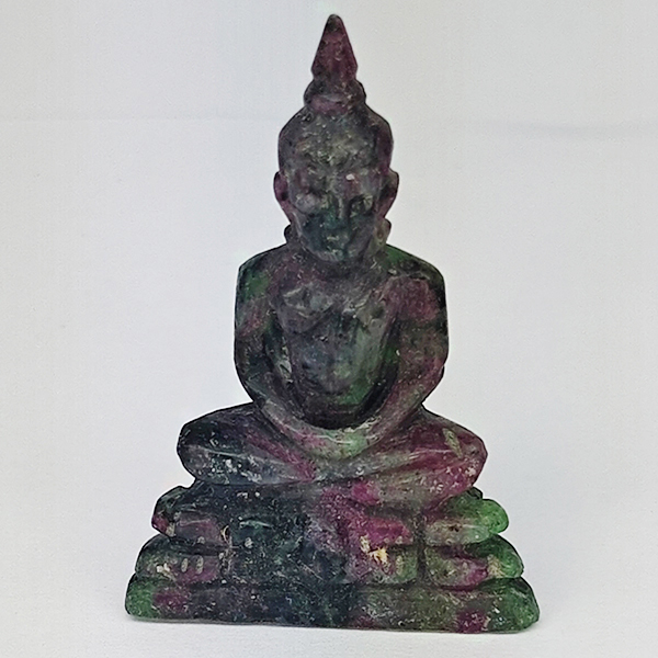Natural Red Green Ruby in Zoisite 52.17 Ct. Buddha Carving Shape 43 x 29 Mm Gemstone From Madagascar
