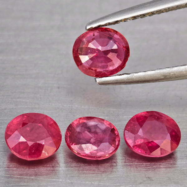 Natural Pinkish Red Ruby 3.03 Ct. 4 Pcs Oval Shape 5.6 x 5 Mm Gemstone from Madagascar