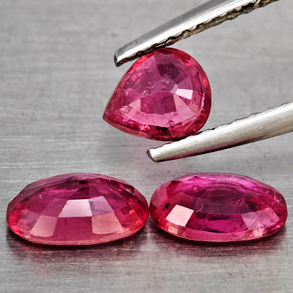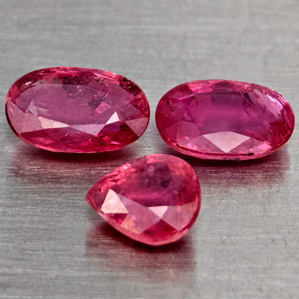 Natural Pinkish Red Ruby 2.45 Ct. 3 Pcs Mixed Shape Gemstone from Madagascar