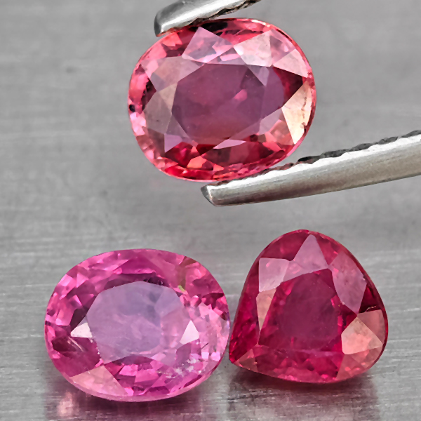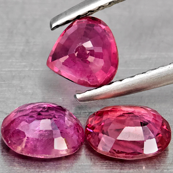Natural Pinkish Red Ruby 2.55 Ct. 3 Pcs Mixed Shape Gemstone from Madagascar