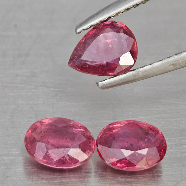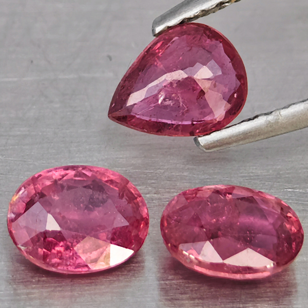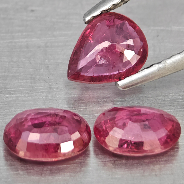 Natural Pinkish Red Ruby 2.25 Ct. 3 Pcs Mixed Shape 6.4 x 5 Mm Gemstone from Madagascar