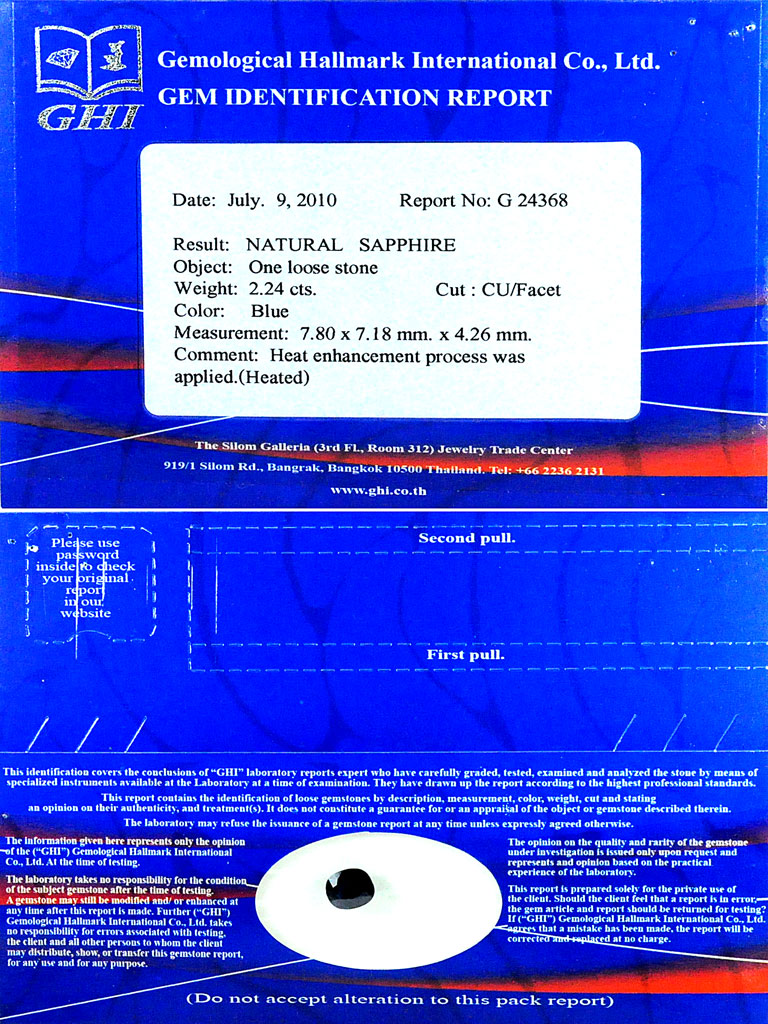 Certified Deep Blue Sapphire 2.24 Ct. Cushion 7.80 x 7.18 Mm. Natural Gem Heated
