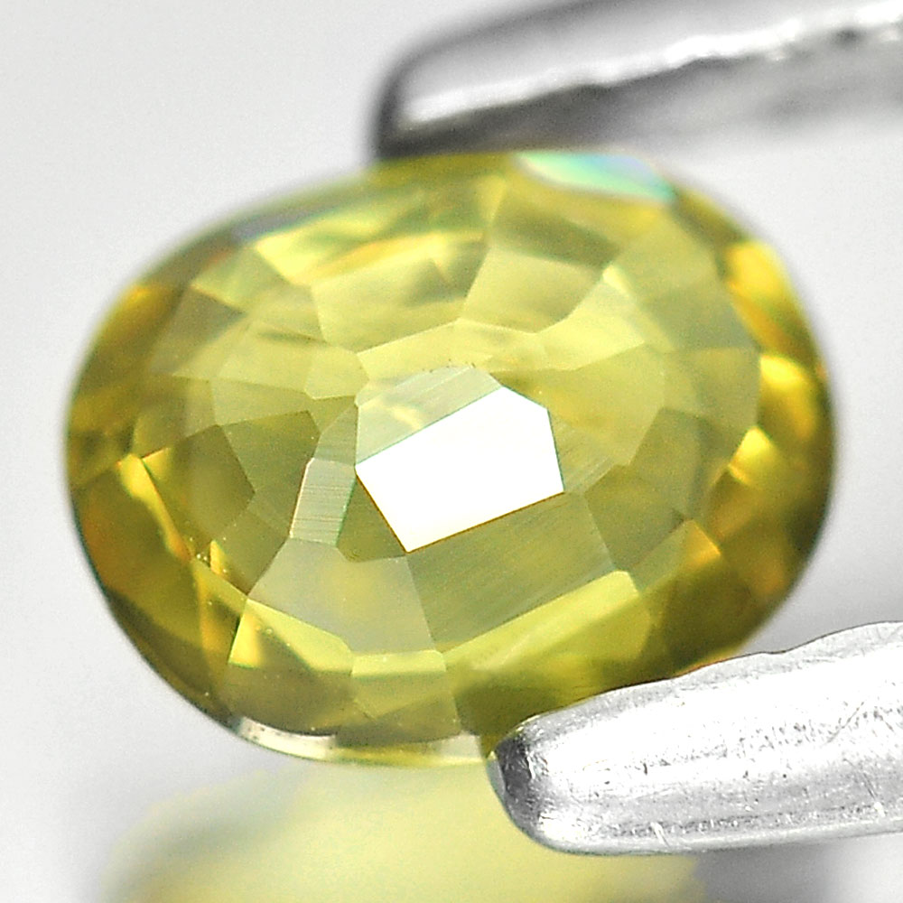 Oval Shape 5.3 x 4.4 Mm. Natural Gem Greenish Yellow Sapphire 0.47 Ct. Thailand