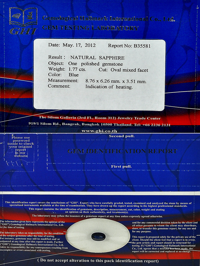 Certified 1.77 Ct. Oval Shape Natural Gem Blue Sapphire Thailand