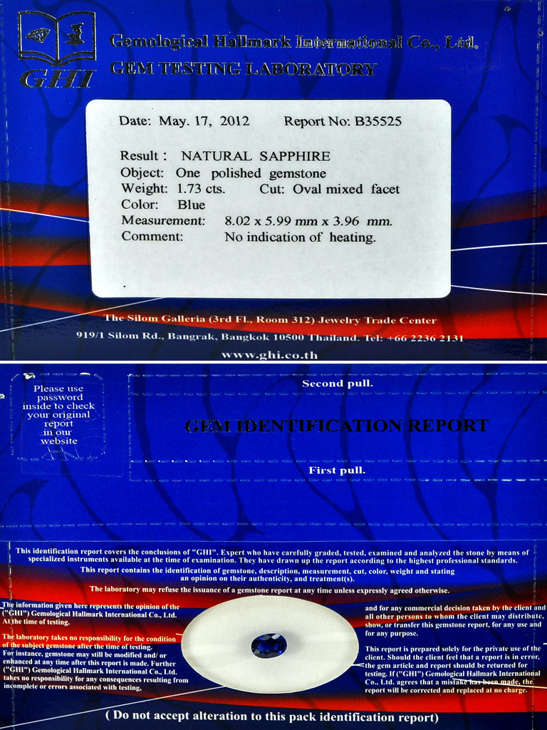 Blue Sapphire Certified 1.73 Ct. Oval Shape Natural Unheated Gemstone Nigeria