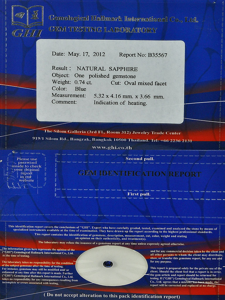 Certified Blue Sapphire 0.73 Ct. Oval 5.32 x 4.16 Mm. Natural Gemstone Nigeria