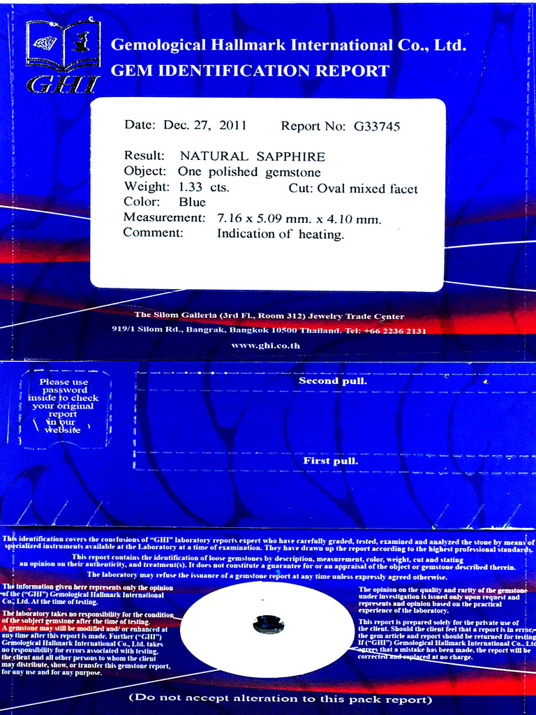 Certified Blue Sapphire Oval Shape 7.16 x 5.09Mm.1.33 Ct. Natural Gem Madagascar