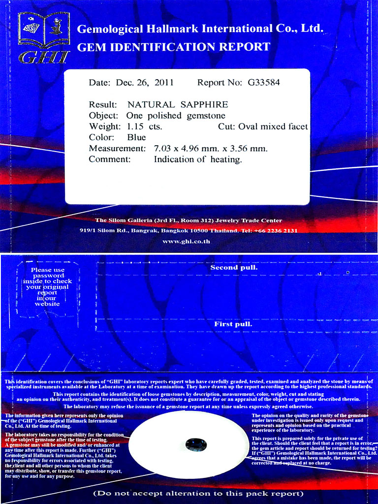 Natural Gemstone Blue Sapphire 1.15 Ct. Certified Oval 7.03 x 4.96Mm. Madagascar