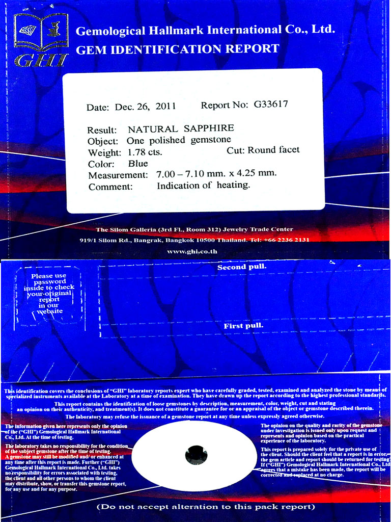 Certified Blue Sapphire 1.78Ct. Round 7.1 x 7.1 x 4.2 Mm. Natural Gem Madagascar