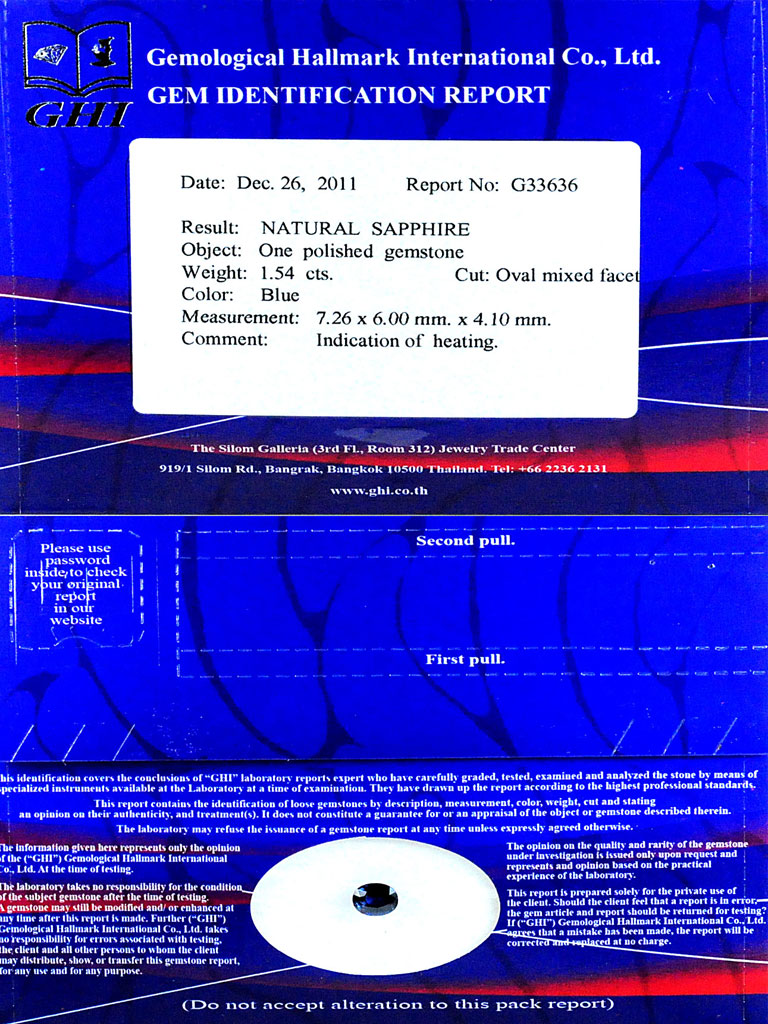 1.54 Ct. Certified Oval Shape Natural Gemstone Blue Sapphire Madagascar
