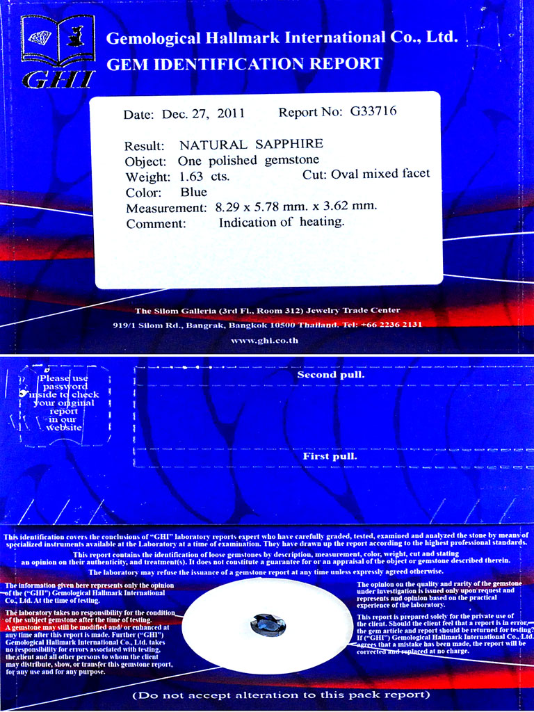 Certified Blue Sapphire 1.63 Ct. Oval 8.3 x 5.7 Mm. Natural Gemstone Madagascar
