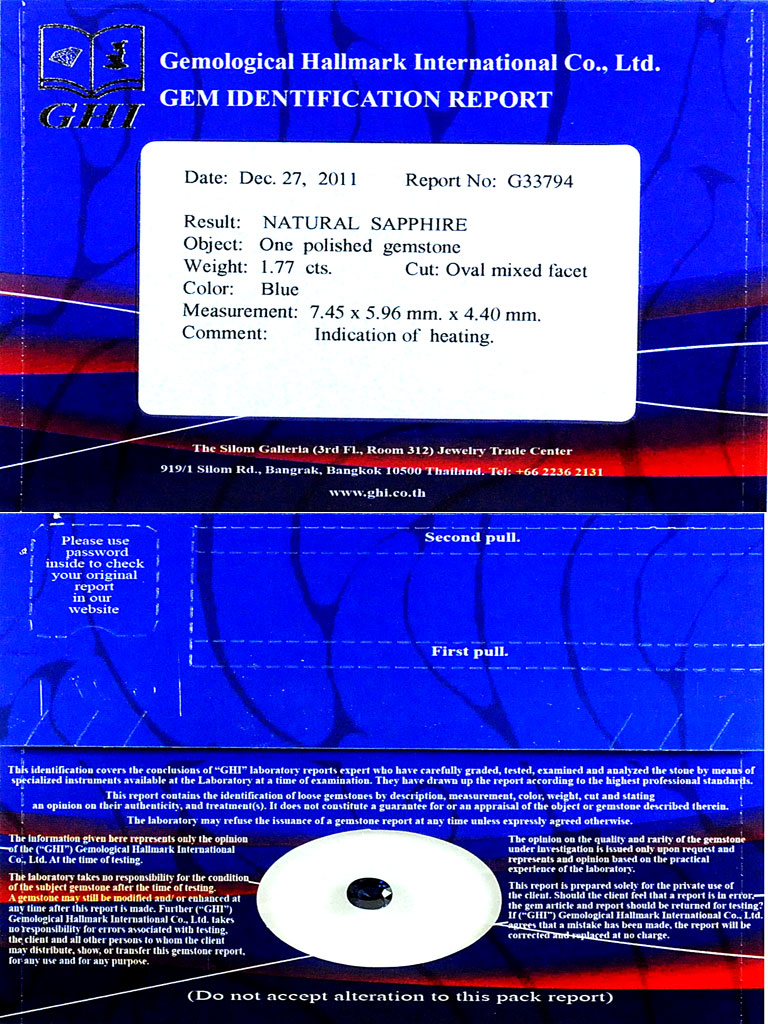 Blue Sapphire Certified 1.77 Ct. Oval 7.45 x 5.96 Mm. Natural Gem Madagascar