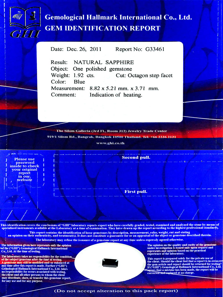 Certified 1.92 Ct. Octagon Shape Natural Blue Sapphire Madagascar