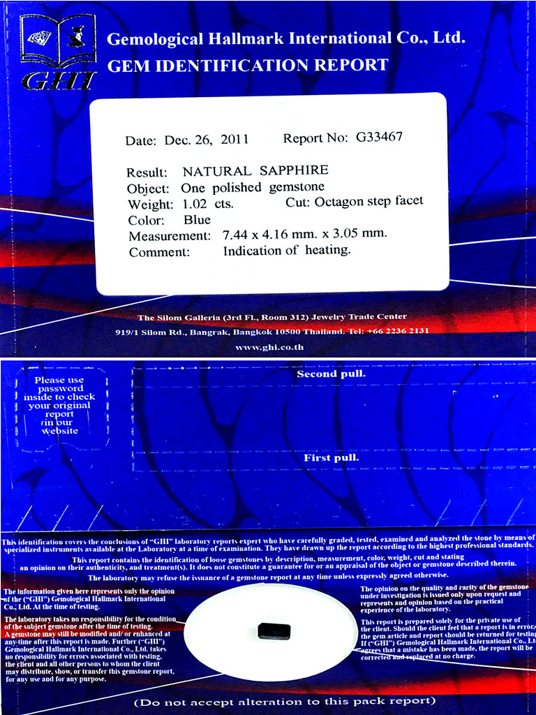 Certified Blue Sapphire 1.02 Ct. VVS Octagon Shape 7.44 x 4.16 Mm. Natural Gem