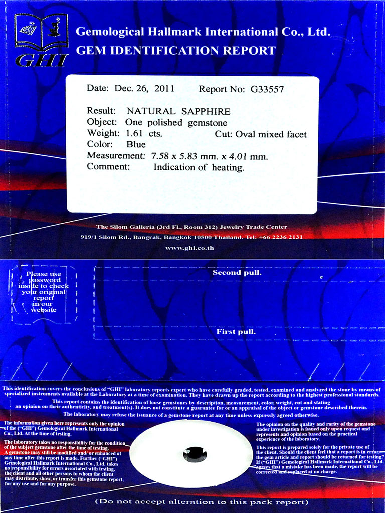 Certified Blue Sapphire 1.61 Ct. VVS Oval 7.58 x 5.83 Mm .Natural Gem Madagascar