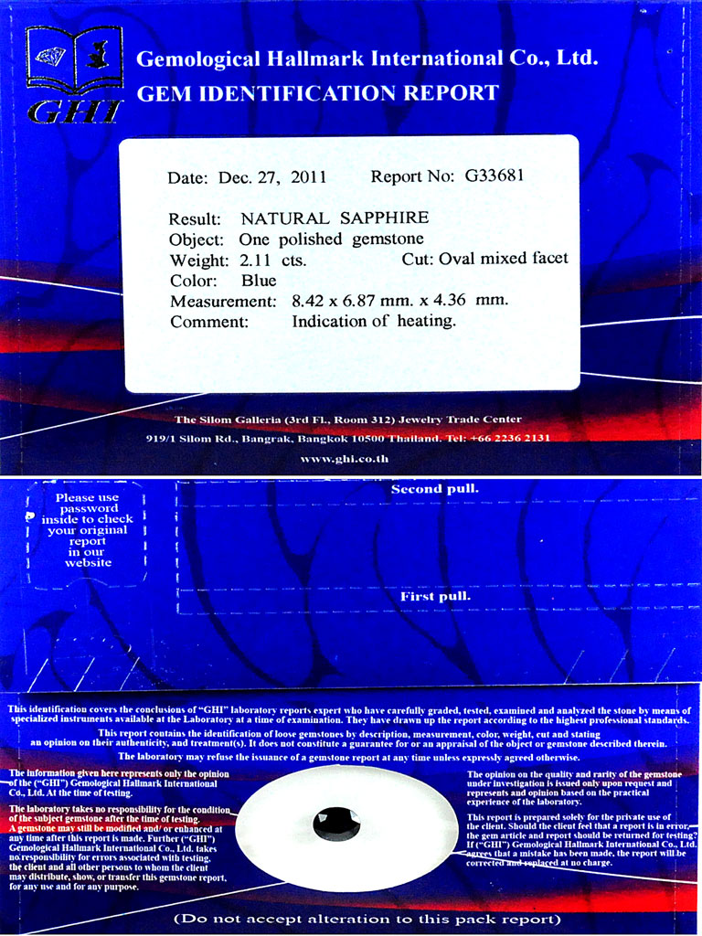 Certified Blue Sapphire 2.11 Ct. Oval Shape 8.4 x 6.8 Mm. Natural Gem Madagascar