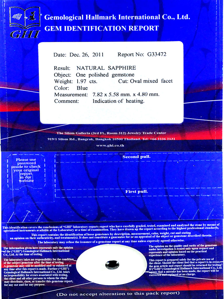 Certified Blue Sapphire 1.97 Ct. VVS Oval 7.82 x 5.58 Mm. Natural Gem Madagascar