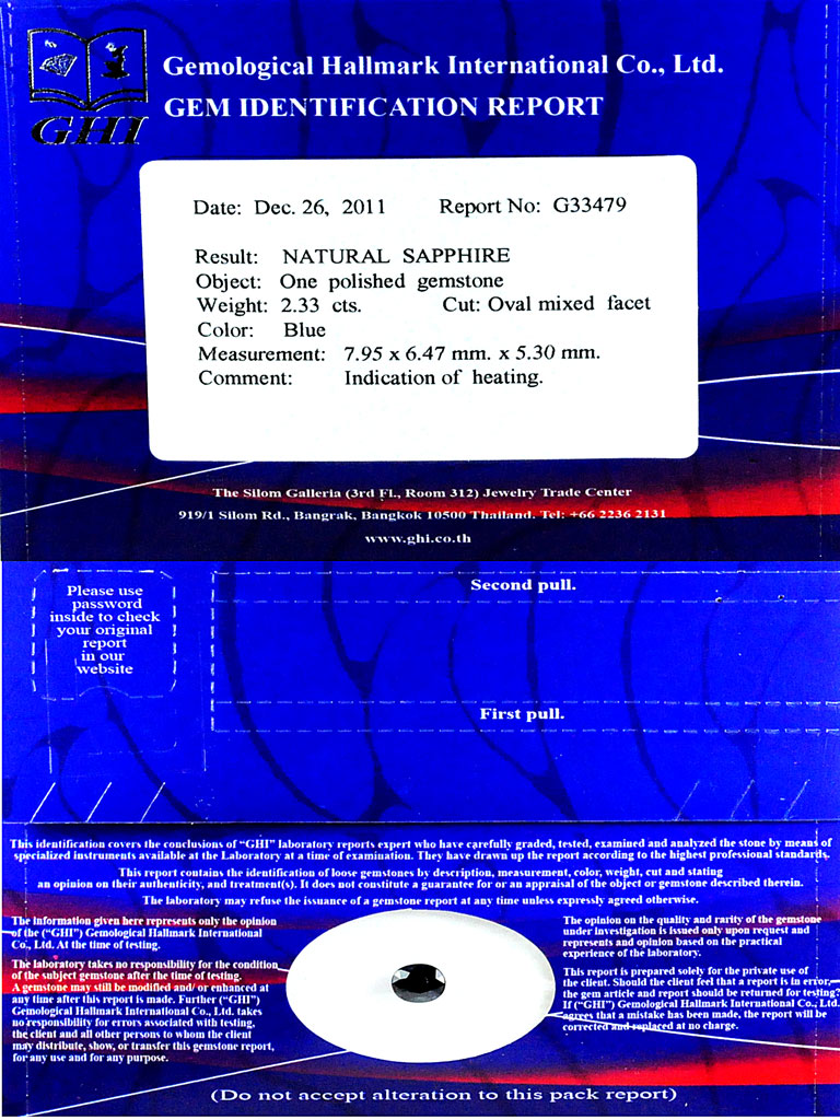 Certified Blue Sapphire 2.33 Ct. VVS Oval 7.95 x 6.47 Mm. Natural Gem Madagascar