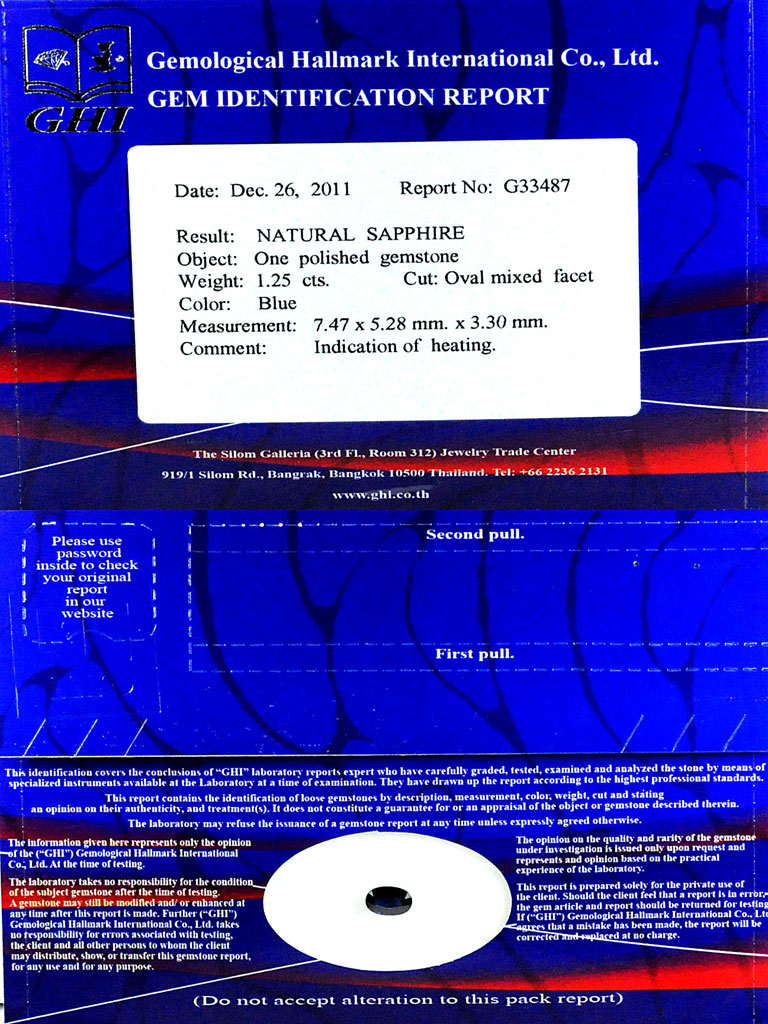 Certified Blue Sapphire 1.25 Ct. VVS Oval 7.47 x 5.28 Mm. Natural Gem Madagascar