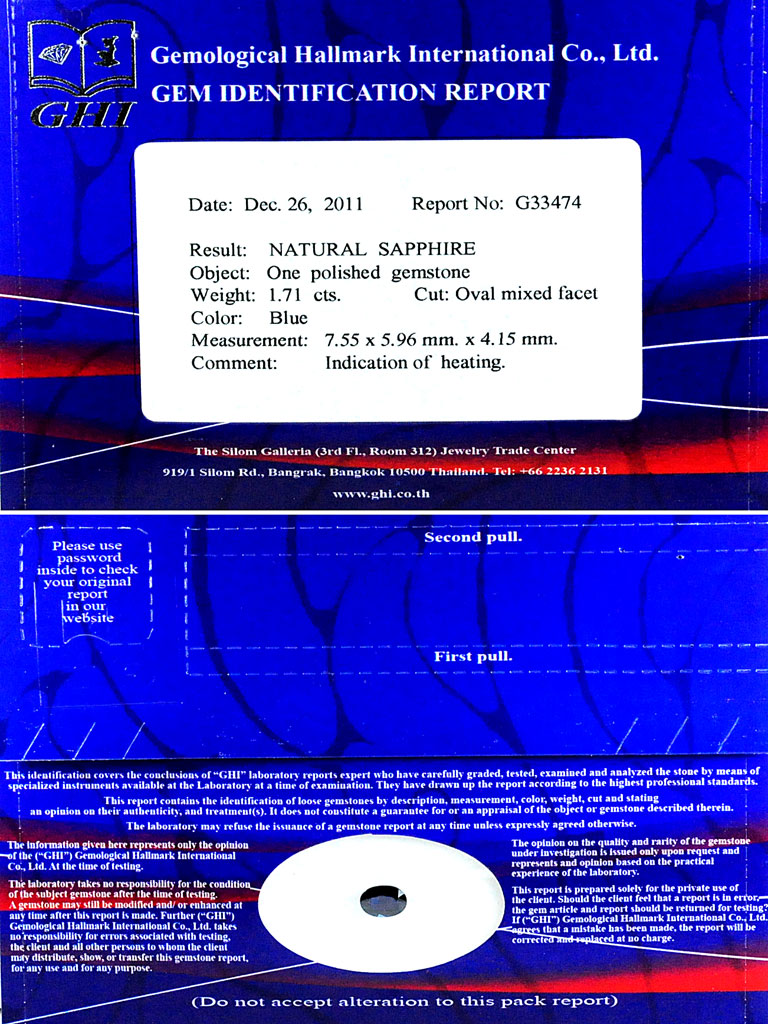 Certified Alluring Gemstone 1.71 Ct. Natural Blue Sapphire From Madagascar
