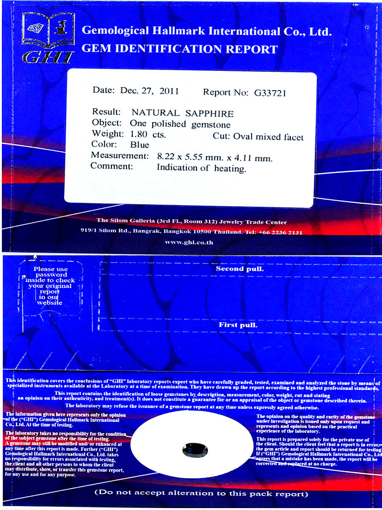 Certified Blue Sapphire 1.80 Ct. VVS Oval Shape 8.22 x 5.55 Mm. Natural Gemstone