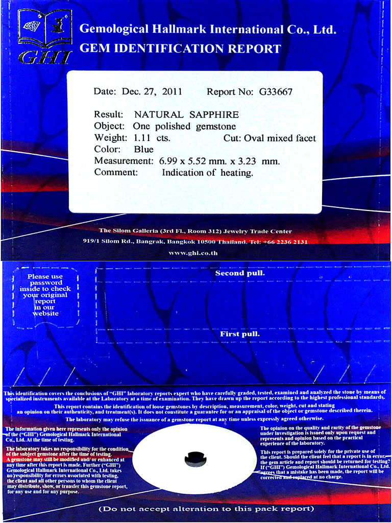 Certified Blue Sapphire 1.11 Ct. VVS Oval Shape 6.99 x 5.52 Mm. Natural Gemstone