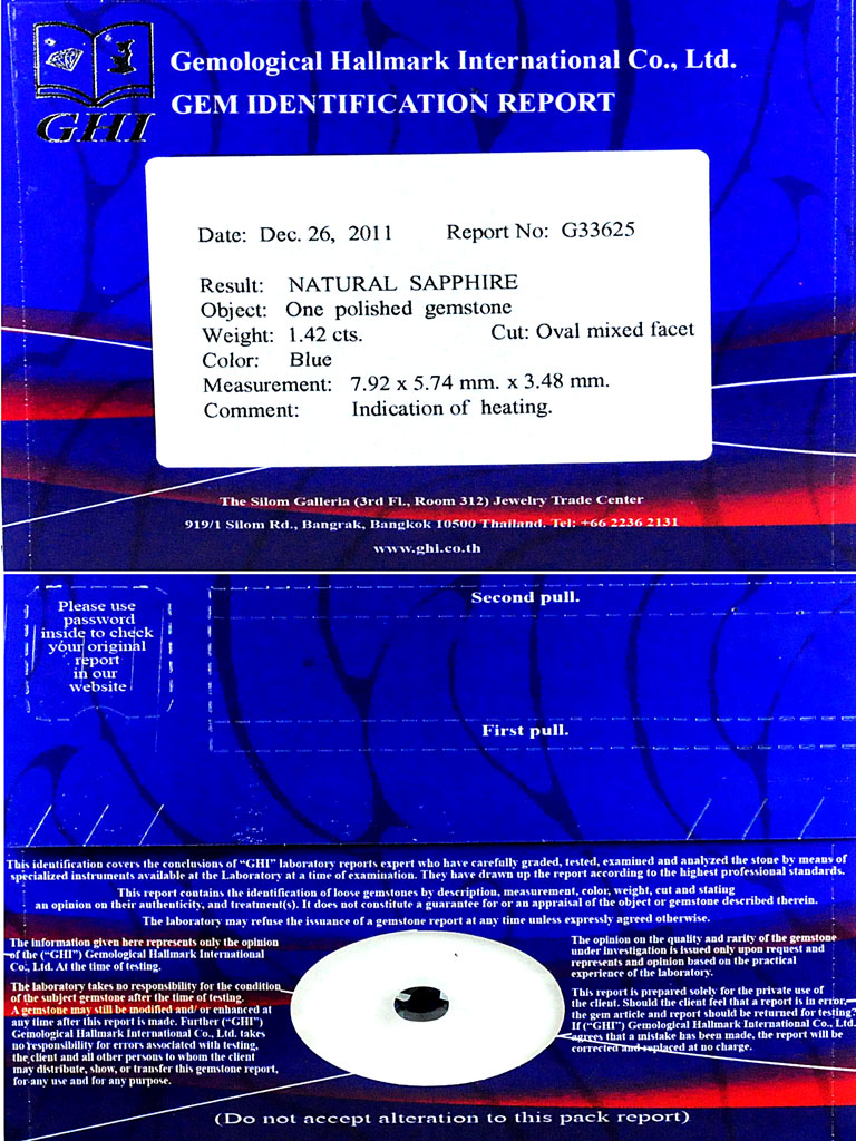 Certified Blue Sapphire 1.42 Ct. VVS Oval 7.92 x 5.74 Mm. Natural Gem Madagascar