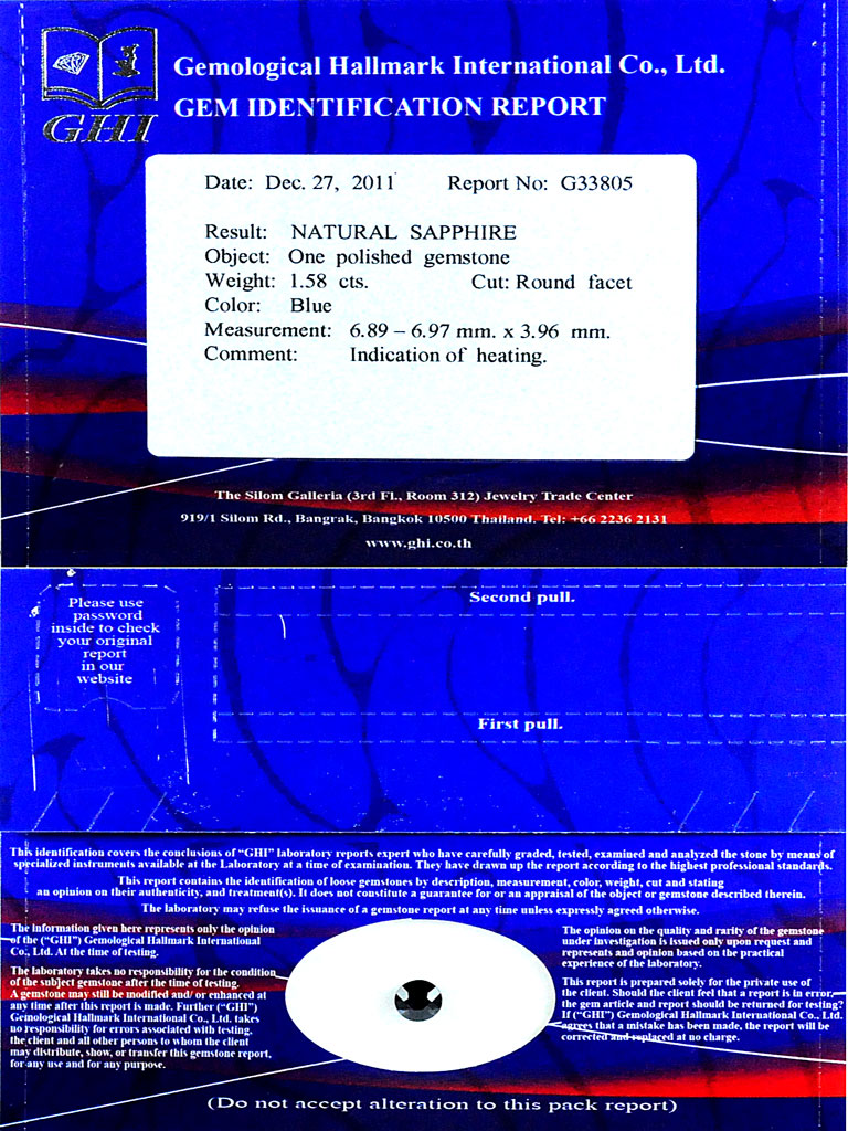 Certified Blue Sapphire 1.58 Ct. Round 6.89 - 6.97 x 3.96 Mm. Natural Gemstone