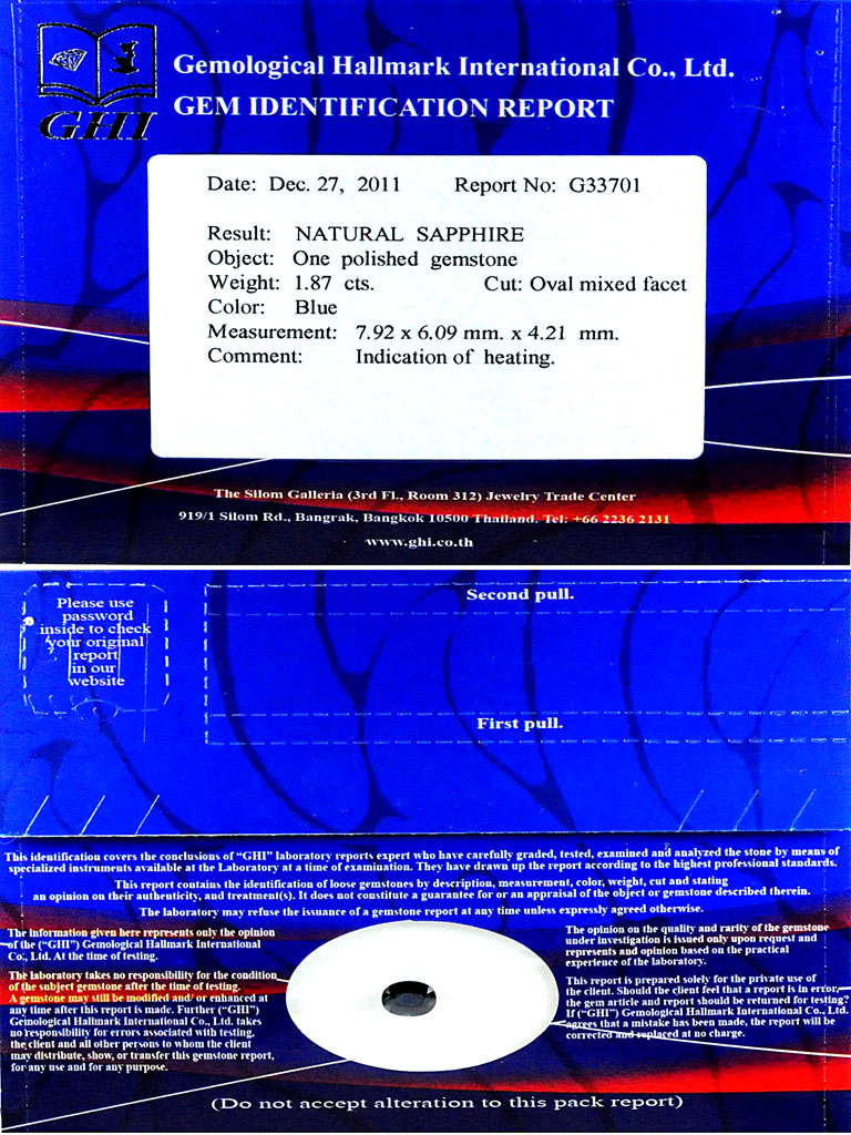 Blue Sapphire Certified 1.87 Ct. VVS Oval 7.9 x 6 Mm Natural Gemstone Madagascar
