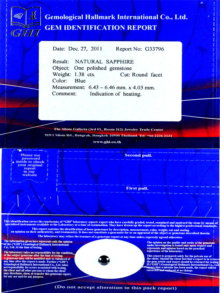 1.38 Ct. Certified Natural Blue Sapphire Gemstone Round Shape Madagascar