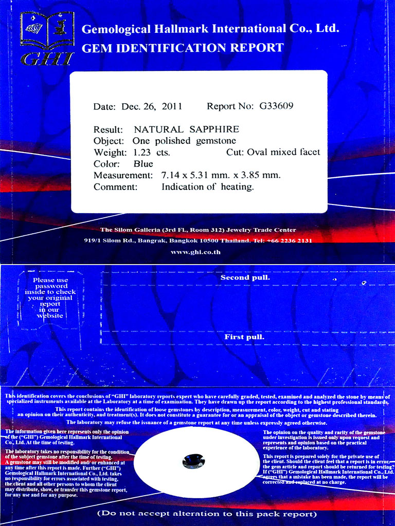 Certified Blue Sapphire 1.23 Ct. VVS Oval 7.14 x 5.31 Mm. Natural Gem Madagascar