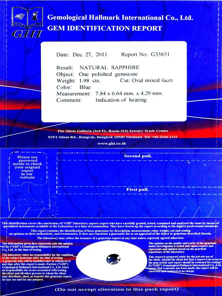 Certifi 1.98 Ct. Oval Shape Natural Blue Sapphire Gemstone From Madagascar