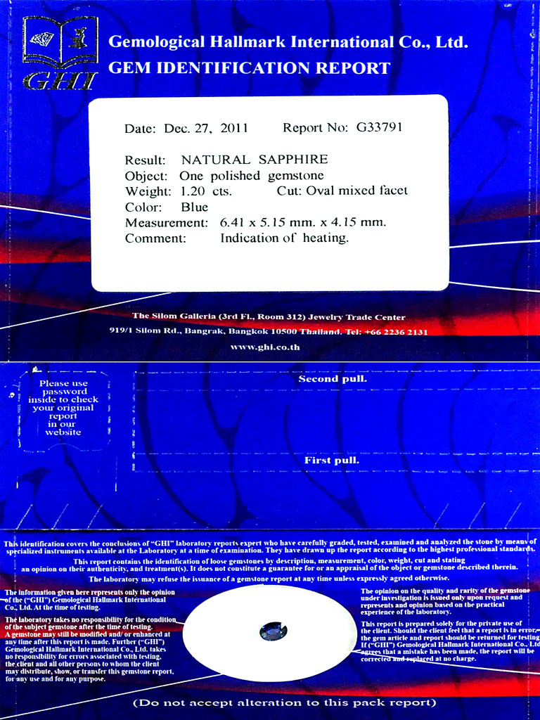 Certified Blue Sapphire 1.20 Ct. Oval 6.41 x 5.15 Mm.Natural Gemstone Madagascar