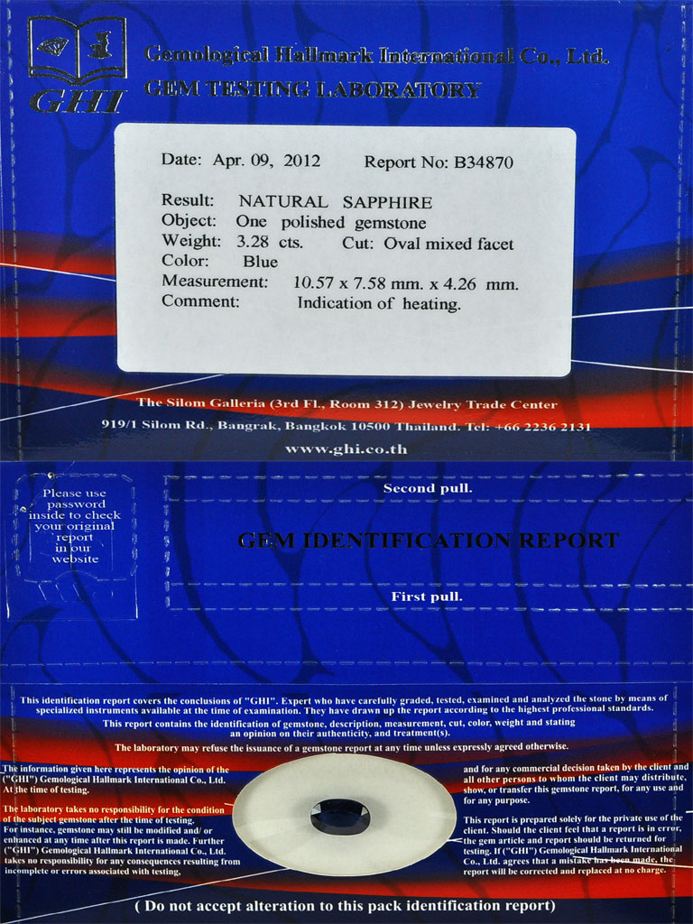 Certified 3.28 Ct. Oval Shape Natural Blue Sapphire Gemstone