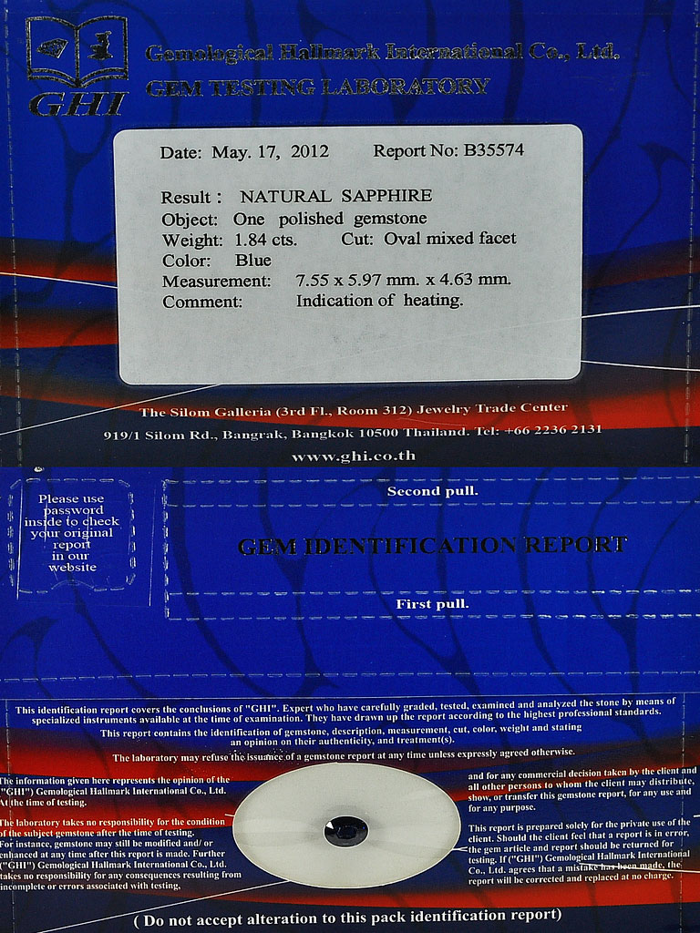 Certified 1.84 Ct. Natural Blue Sapphire From Madagascar
