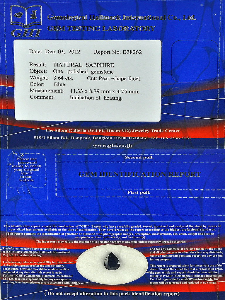 Certified 3.64 Ct. Pear Shape Natural Blue Sapphire Gemstone