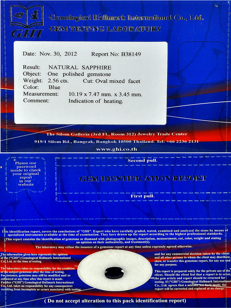 Certified Blue Sapphire 2.56 Ct. Oval 10.19 x 7.47 Mm. Natural Gem Madagascar