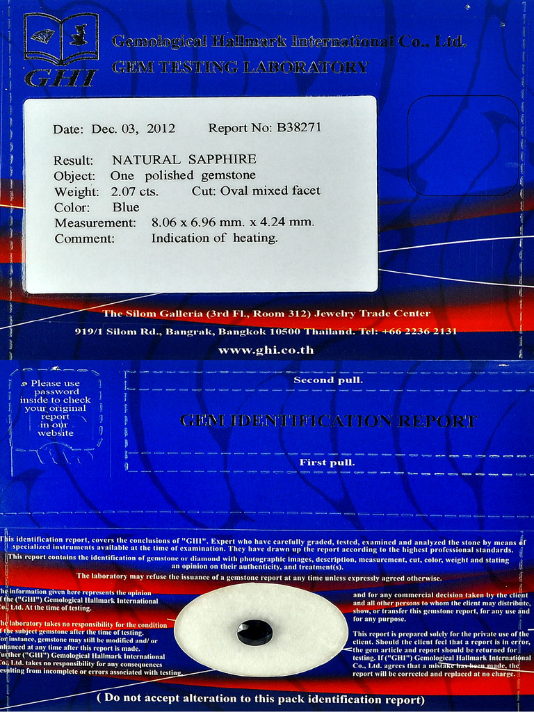 Certified Blue Sapphire 2.07 Ct. Oval 8.06 x 6.96 Mm Natural Gemstone Madagascar