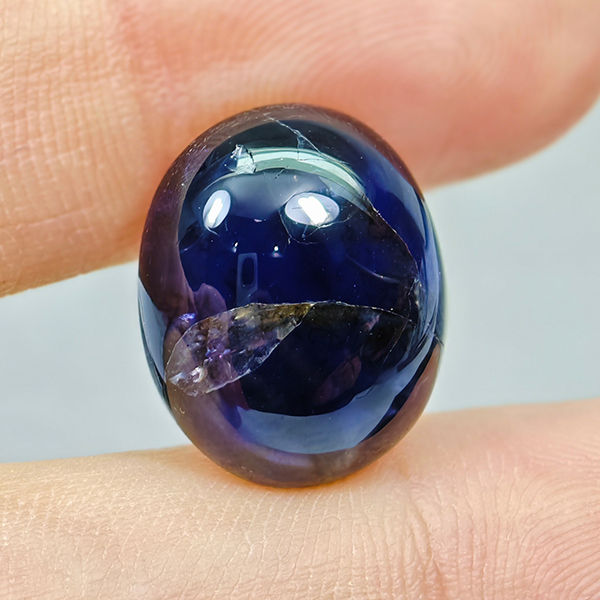 Natural Deep Blue Purple Diffusion Sapphire 9.08 Ct. Oval Cabochon 15 x 12.3 Mm