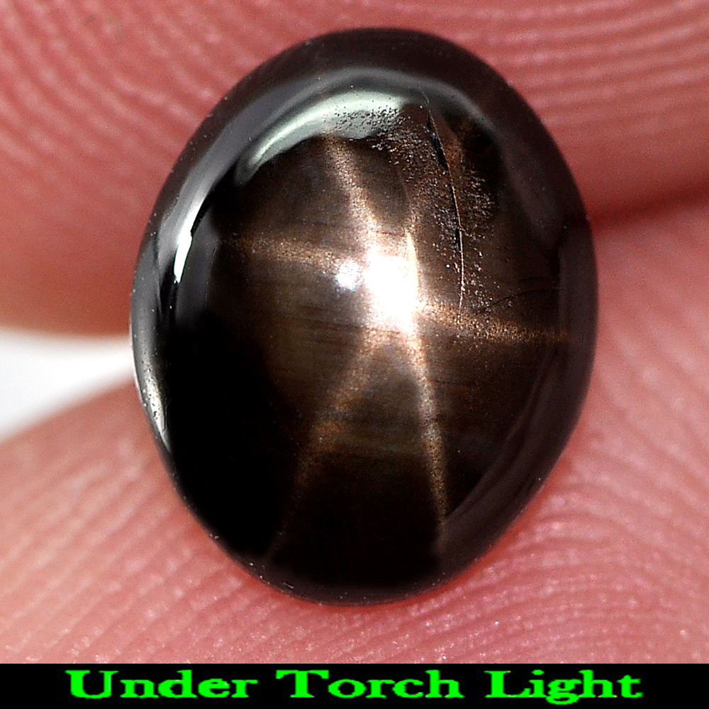 Natural Gemstone Black Star Sapphire 6 Rays 2.81 Ct. Oval Cabochon Thailand