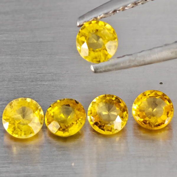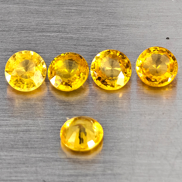 à ¹ŒNatural Yellow Sapphrie 0.92 Ct. 5 Pcs Round Shape 3.4 Mm Gemstone from Thailand