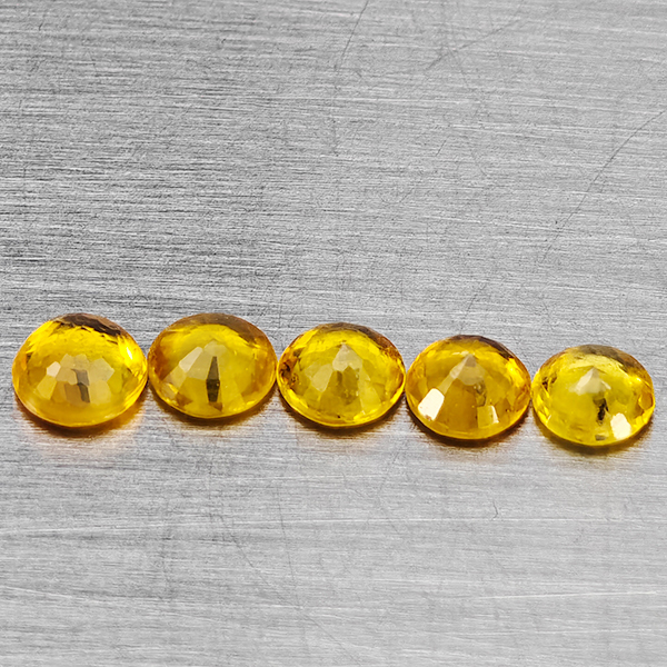 à ¹ŒNatural Yellow Sapphrie 0.84 Ct. 5 Pcs Round Shape 3.4 Mm Gemstone from Thailand