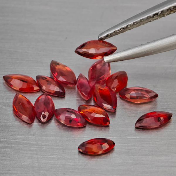 Natural Orangish Red Songea Sapphire 1.88 Ct. 15 Pcs Marquise Shape Gemstones From Tanzania