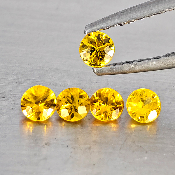 Natural Yellow Songea Sapphire 0.78 Ct. 5 Pcs Round Diamond Cut 3.3 Mm Gemstones From Tanzania