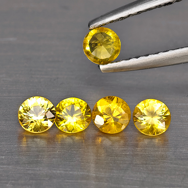 Natural Yellow Songea Sapphire 0.88 Ct. 5 Pcs Round Diamond Cut 3.4 Mm Gemstone from Tanzania