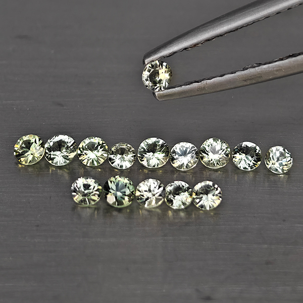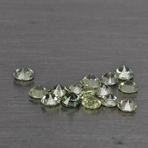 Natural Green Songea Sapphire 0.83 Ct. 15 Pcs Round Diamond Cut 2.5 Mm Gemstone from Tanzania