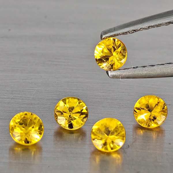 Natural Yellow Songea Sapphire 0.86 Ct. 5 Pcs Round Diamond Cut 3.4 Mm Gemstone from Tanzania