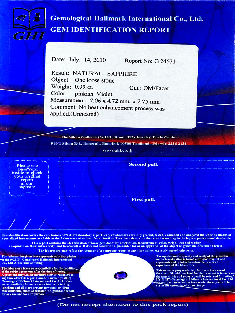 Pinkish Violet Sapphire Certified 0.99 Ct. Oval Shape Natural Unheated Gemstone