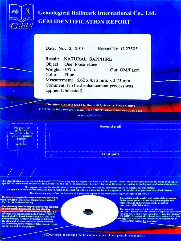 Certified Unheated 0.77 Ct. Oval Shape Natural Blue Sapphire